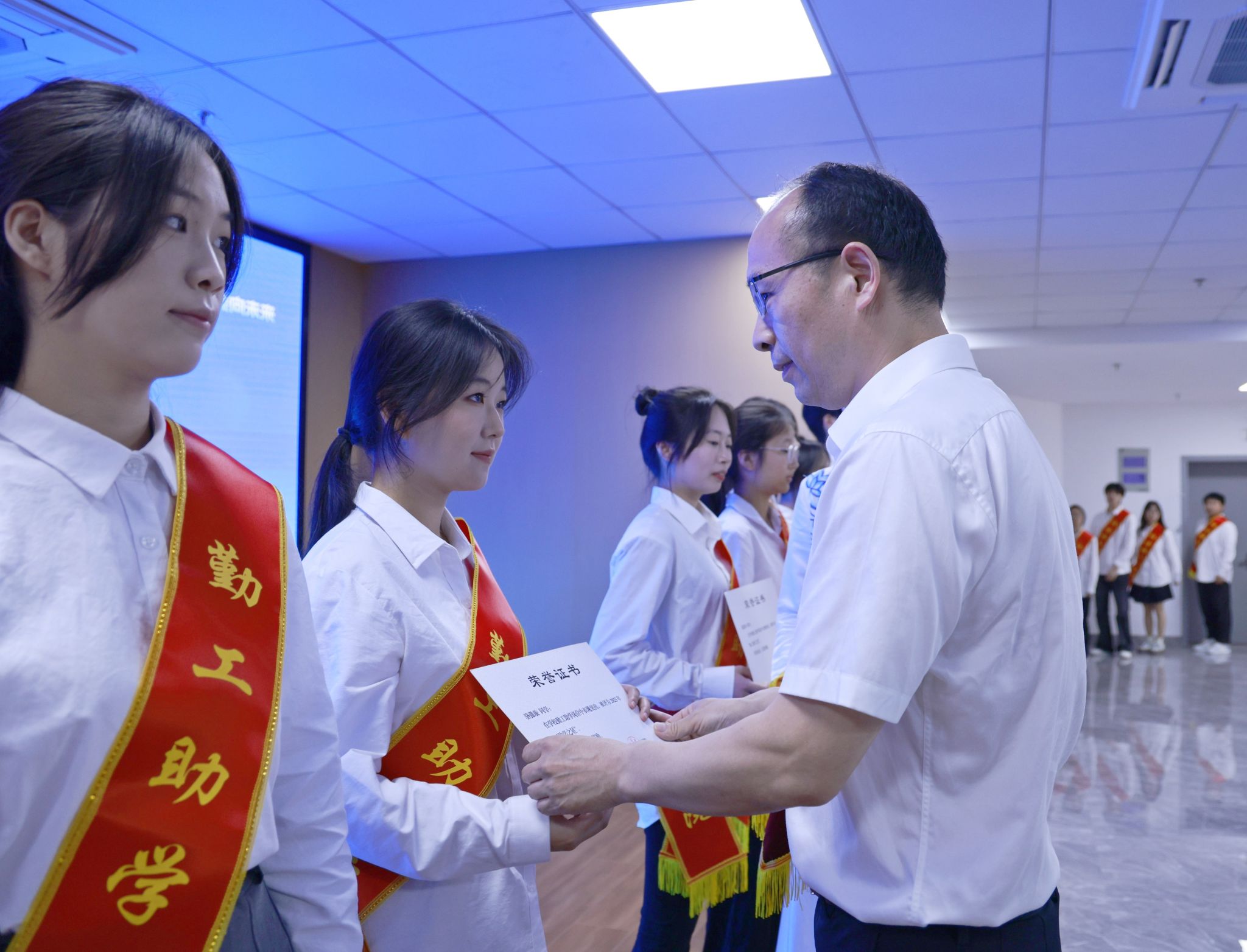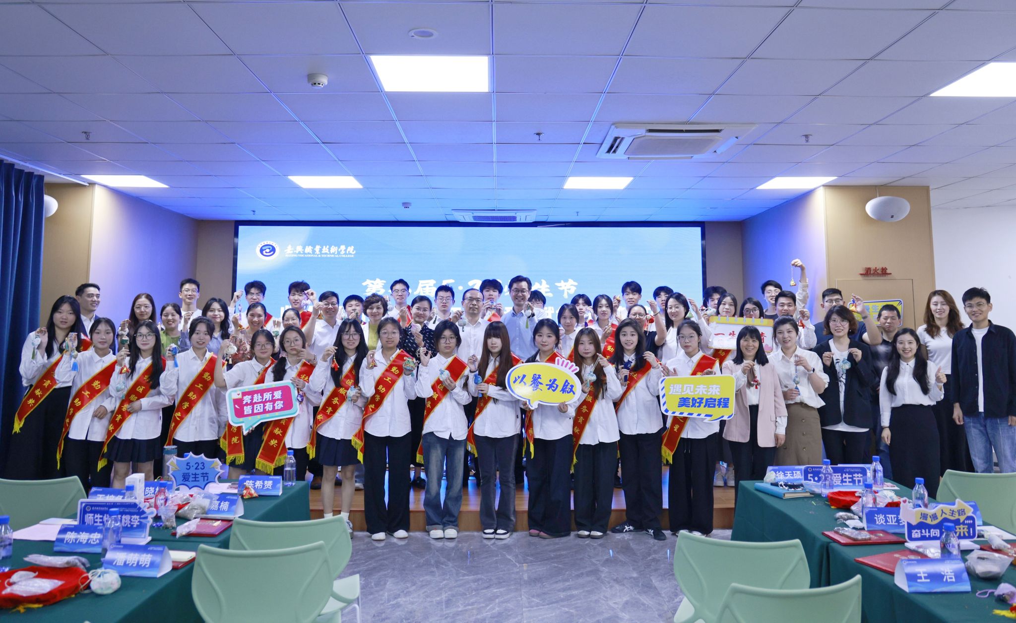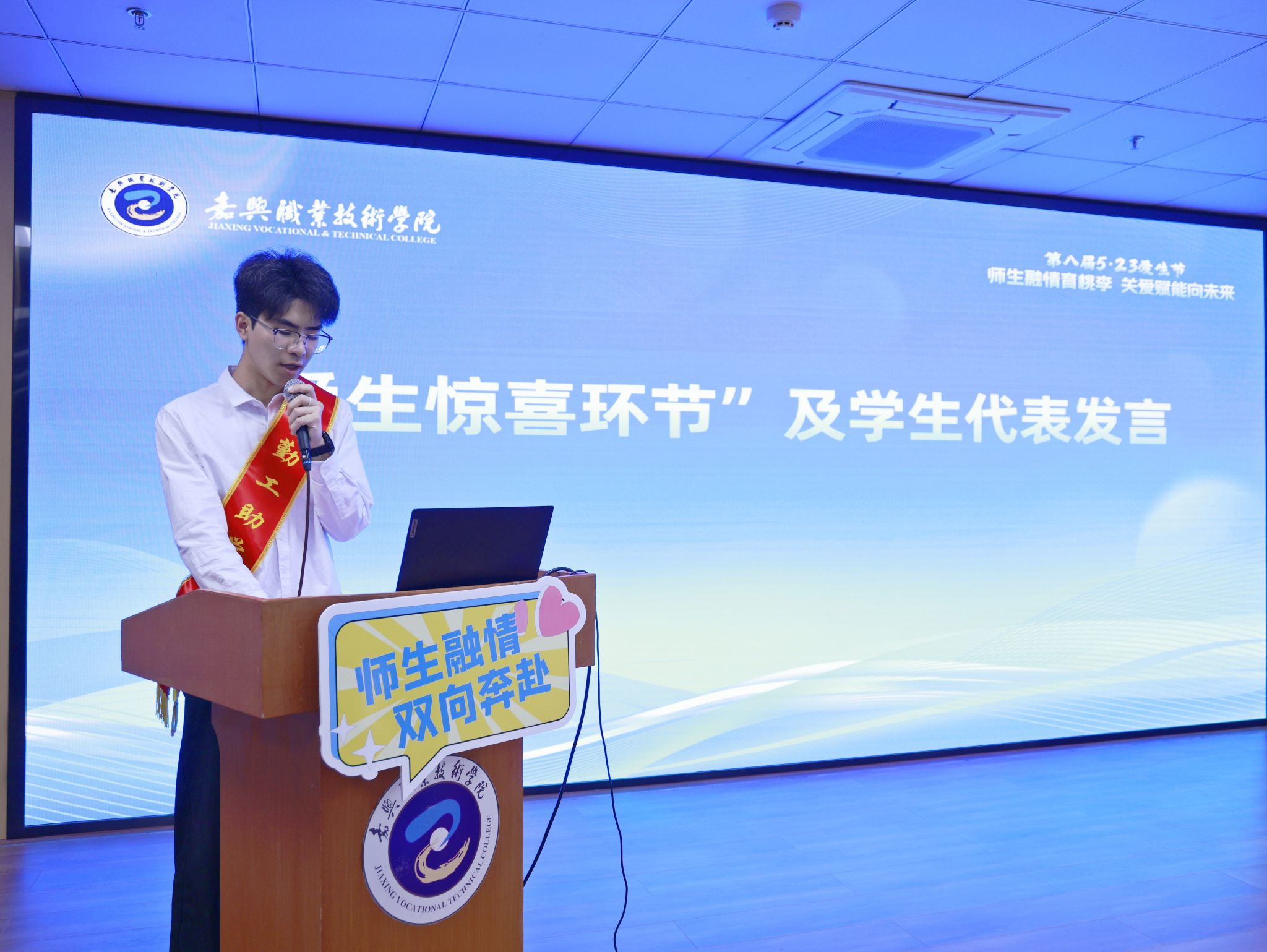 五月的校園,綠草如茵,愛意涌動。5月23日上午,嘉職院第八屆“5·23”愛生節(jié)系列活動在明德書院學(xué)生發(fā)展中心啟動,校黨委委員、副校長陳海忠、相關(guān)職能部門二級學(xué)院負(fù)責(zé)人,輔導(dǎo)員、班主任、任課老師代表和學(xué)生代表參加活動。陳海忠為10名勤工助學(xué)之星、20名社區(qū)服務(wù)貢獻(xiàn)獎獲獎學(xué)生頒獎。