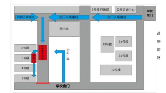 1.考試入場流程:根據(jù)浙江省教育考試院要求,嚴禁考生攜帶手機、藍牙耳機、智能手表(手環(huán))等具有發(fā)送或接收信息功能的設備參加考試,如帶入考點須集中存放,考生需兩次安檢。考生按照制定線路(詳見圖1)到達手機集中保管區(qū)。從南門進入的考生,必須從手機集中保管處經(jīng)過,再通過安檢門。工作人員在準考證上蓋“已上交”章,隨后經(jīng)封閉通道在5號樓大臺階下過安檢門進行一次安檢,進入3號樓考場內(nèi)再接受二次安檢。
