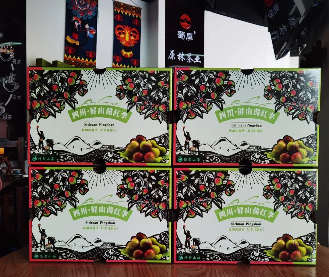 設(shè)計團隊以“屏山山水”和“李果自然生態(tài)”為靈感,推出清新簡約、富有辨識度的包裝方案。從色彩選擇到字體設(shè)計,從材質(zhì)環(huán)保到結(jié)構(gòu)優(yōu)化,每一個細(xì)節(jié)都凝聚著專業(yè)匠心。新包裝一亮相,便贏得消費者青睞,產(chǎn)品附加值顯著提升。又是一年茵紅李豐收時,嘉職院黨員師生的設(shè)計包裝已應(yīng)用在今年的產(chǎn)品上,短視頻培訓(xùn)孵化的本土主播正熱情推介。在茵紅李產(chǎn)業(yè)幫扶中,構(gòu)建“電商直播+品牌包裝+社群團購”全鏈條銷售模式,創(chuàng)建“產(chǎn)地直供+全場景直播+社區(qū)直通車”的“共富工坊”幫扶體系,累計助銷農(nóng)產(chǎn)品超380噸,銷售額突破730萬元,帶動農(nóng)戶增收35%。果園邊、直播間里、包裝車間內(nèi),嘉職院師生黨員與屏山鄉(xiāng)親并肩奮戰(zhàn)的身影,勾勒出東西協(xié)作促振興的動人畫面。