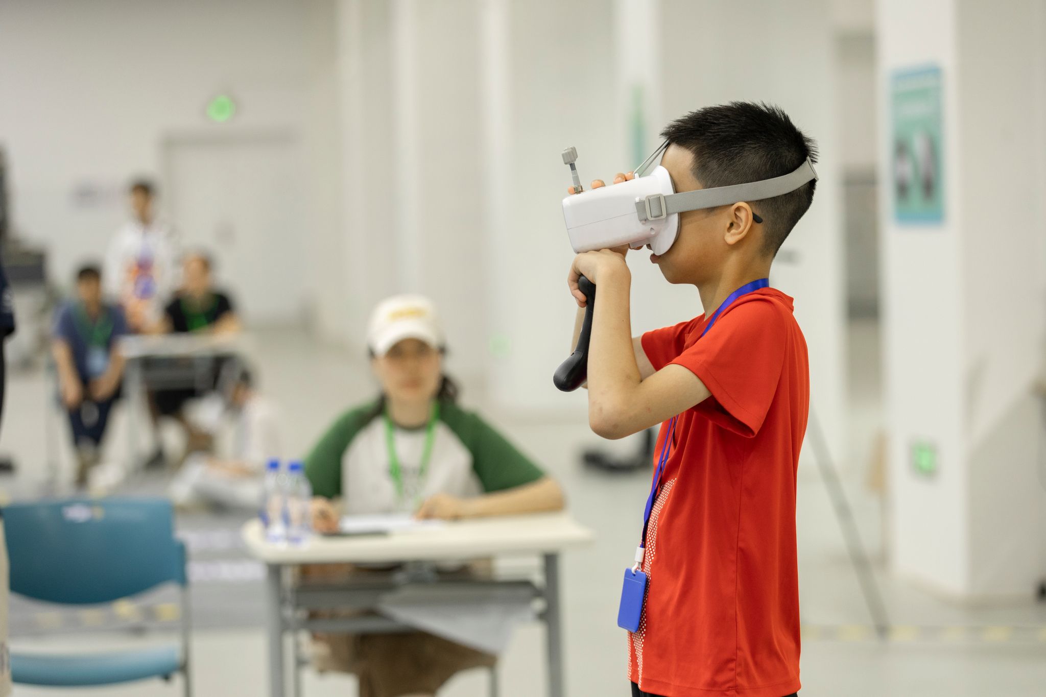 小學(xué)組選手張同學(xué)興奮地說(shuō):“戴上眼鏡操控?zé)o人機(jī),感覺(jué)就像自己在飛一樣!穿越每一個(gè)障礙都很有挑戰(zhàn)性,也特別有成就感,讓我對(duì)無(wú)人機(jī)技術(shù)更著迷了。”