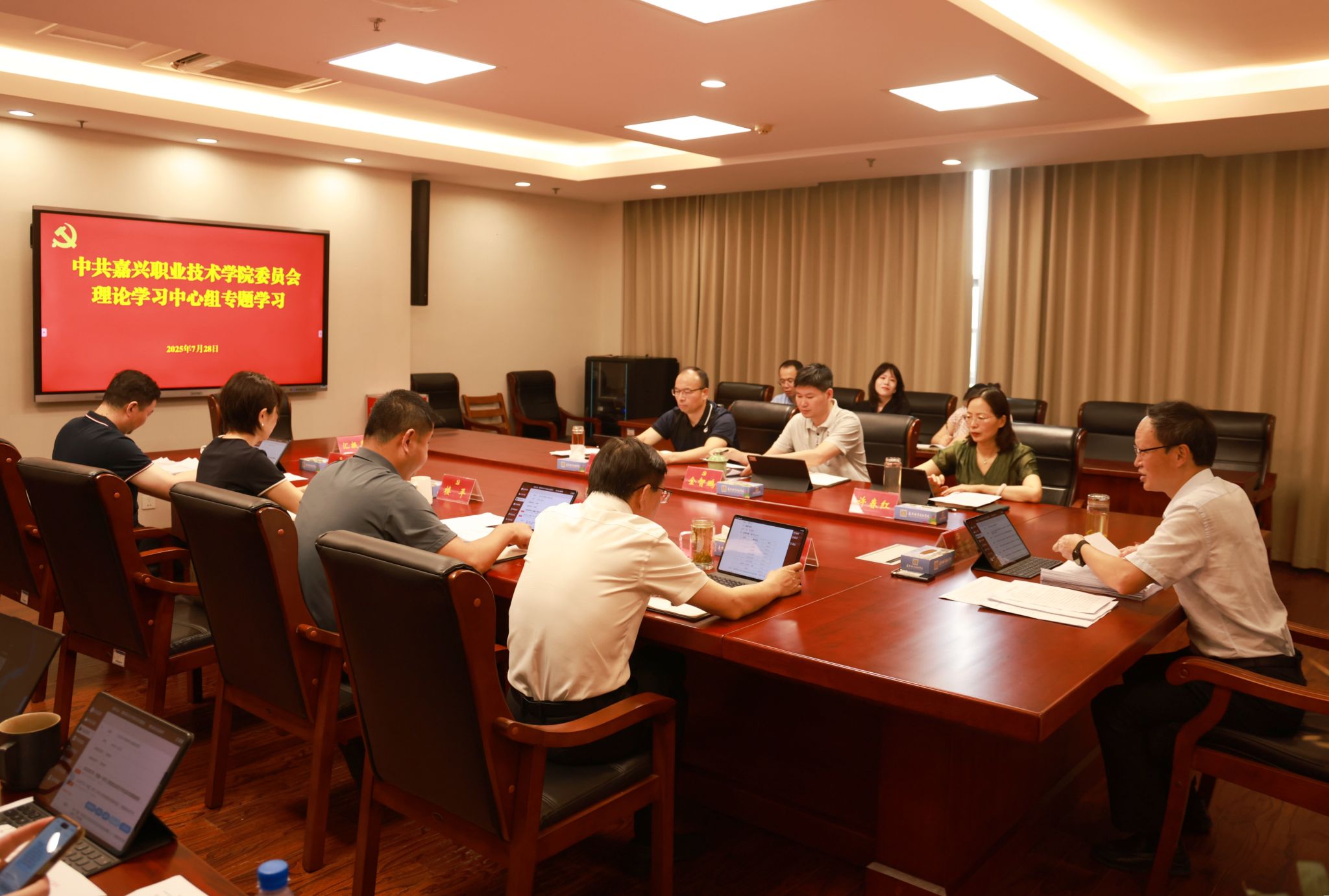 7月28日,嘉職院黨委理論學習中心組召開專題學習會,專題學習《中華人民共和國文物保護法》。黨委書記朱學軍主持并講話,黨委委員、紀委書記徐新強,黨委委員、副校長陳海忠作交流發(fā)言。