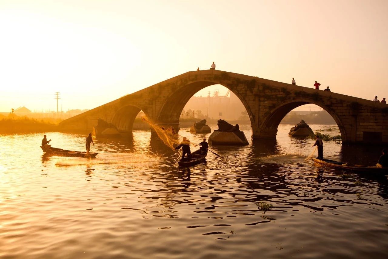 站在長虹橋上,腳下的運(yùn)河水正嘩嘩奔涌。這座72.8米的三孔石拱橋,把河?xùn)|河西的煙火連成一脈。它是“運(yùn)河入浙第一橋”,自610年江南運(yùn)河貫通,王江涇從邊鄙小村變成“吳越通津”,到明萬歷年間,在嘉興知府吳國仕的倡議下,工匠們用“堆土法”一點(diǎn)點(diǎn)壘起,一層石頭一層土,像搭積木似的把拱架起來,這種“逆向施工”的智慧,讓軟土地基上的石橋挺過了數(shù)百年的風(fēng)雨。