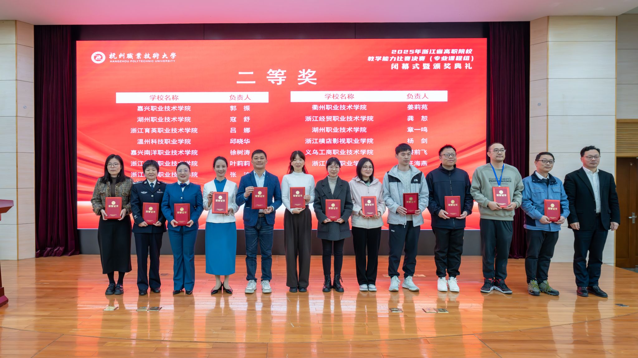 11月22日至24日,由浙江省教育廳主辦的浙江省高職院校教師教學(xué)能力比賽圓滿落幕。本屆比賽競爭激烈,共評(píng)選出一等獎(jiǎng)42項(xiàng)、二等獎(jiǎng)69項(xiàng),三等獎(jiǎng)112項(xiàng)。我校參賽教師發(fā)揮出色、成績斐然,共獲得一等獎(jiǎng)3項(xiàng),二等獎(jiǎng)4項(xiàng),三等獎(jiǎng)3項(xiàng)。在全省高職院校中,我校一、二等獎(jiǎng)獲獎(jiǎng)數(shù)量位居第二,僅次于杭州職業(yè)技術(shù)大學(xué),連續(xù)三年保持優(yōu)異賽績!