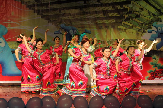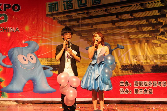 本次晚會(huì)意在讓大家走近世博,加深同學(xué)們對(duì)世界博覽會(huì)的了解,拓寬同學(xué)們的視野,進(jìn)一步了解中外的不同文化,。晚會(huì)節(jié)目豐富多彩,形式多樣有體現(xiàn)中國(guó)江南水鄉(xiāng)特色的舞蹈《江南雨》、有展現(xiàn)安徒生童話故事《海的女兒》的全英文版的話劇、也有展現(xiàn)各國(guó)風(fēng)情的時(shí)裝秀等。南湖星光合唱團(tuán)的阿姨們也給我們帶來(lái)了幾個(gè)精彩的節(jié)目,女生二重唱《祖國(guó)的戀情》、女生三重唱《九九艷陽(yáng)天》、群舞《湖邊的孔雀》。阿姨們做的每一個(gè)動(dòng)作都非常認(rèn)真和努力,一顰一笑都顯得很專業(yè),他們的表演博得了臺(tái)下雷鳴般的掌聲,也讓晚會(huì)達(dá)到了高潮。