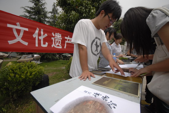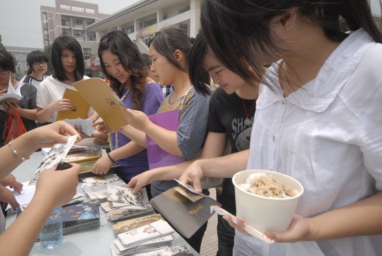 6月12日是我國(guó)第五個(gè)非物質(zhì)文化遺產(chǎn)日,在嘉興職業(yè)技術(shù)學(xué)院食堂附近的生活區(qū),吃完午餐的同學(xué)們?nèi)齼蓛蓙淼郊闻d市博物館工作人員擺好的桌子旁邊,一邊認(rèn)真填寫問卷,一邊翻看印制的精美畫冊(cè),了解著嘉興的史前文化、馬家浜文化、崧澤文化、良渚文化的發(fā)展脈絡(luò),并好奇地觀賞著畫冊(cè)上的奇珍異寶。