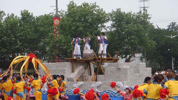 整場大巡游共分嘉興記憶、水鄉(xiāng)風情、秀美江南和節(jié)日狂歡4個板塊,共20個方隊。嘉職院的同學們參加了 “端午習俗”、“江南船拳”和“筑堤圍塘”三個方隊的表演。為了演出的順利進行,3個方隊的192名同學頂著酷暑堅持訓練,又冒雨進行了彩排和聯排,功夫不負有心人,現場的演出非常的精彩,獲得了圓滿成功!