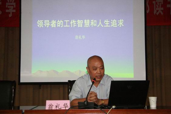 讀書會上,學(xué)院還邀請到了中國財(cái)稅博物館館長、浙江大學(xué)財(cái)稅中心主任、原浙江省財(cái)政廳廳長翁禮華教授作了“領(lǐng)導(dǎo)干部的工作智慧和人生追求”的專題講座。翁教授樂觀豁達(dá)的人生態(tài)度、幽默風(fēng)趣的語言表達(dá)、富有哲理的人生感悟引起了全體與會人員的強(qiáng)烈共鳴。