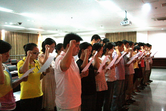 “依法執(zhí)教、愛崗敬業(yè)、熱愛學(xué)生、嚴(yán)謹(jǐn)治學(xué)、團結(jié)協(xié)作、尊重家長、廉潔從教……”,洪亮的聲音表達了新教師們獻身職教的責(zé)任感和使命感。相信在學(xué)院領(lǐng)導(dǎo)的關(guān)懷下,在老教師的指引下,新教師一定會以更加飽滿的熱情投入到今后的工作中,并成長為一名合格的人民教師。(文/劉敏敏 攝/呂凱 沈權(quán)權(quán) 袁嘉)