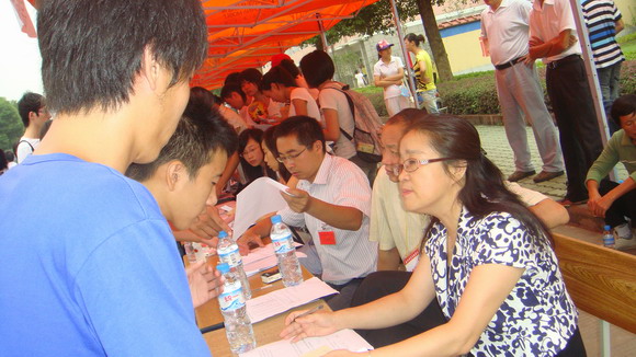 報到、查詢、登記、保險.....有些急切,有些自信,有些泰然,一個個青春洋溢的生命,一張張陽光燦爛的笑臉,在主干道旁依次擺開的各分院帳篷下,新生們紛紛履行著入學(xué)的各項手續(xù)。生環(huán)分院的園林、花卉、動物防疫與檢疫,機(jī)電分院的機(jī)電、數(shù)控,信管分院的電子商務(wù)、信息、管理,外貿(mào)分院的報關(guān)、旅游、貿(mào)易、英語、日語,紡藝分院的紡織、服裝設(shè)計等專業(yè)的報名點前都擠滿了新生。