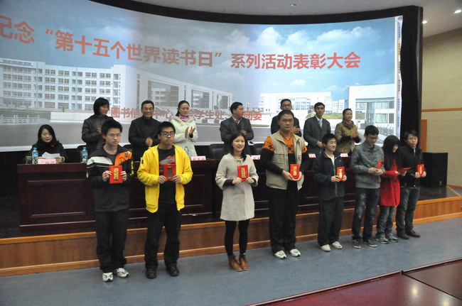 11月23日下午,嘉興職業(yè)技術(shù)學(xué)院2010年紀(jì)念“第十五個(gè)世界讀書日”系列活動(dòng)總結(jié)表彰大會(huì)在4#109報(bào)告廳隆重召開。黨委副書記、副院長(zhǎng)周建新,圖書信息中心主任葛勝娟,團(tuán)委書記錢燕婷、學(xué)生處副處長(zhǎng)王敏堅(jiān)以及各分院分管領(lǐng)導(dǎo)出席了會(huì)議。