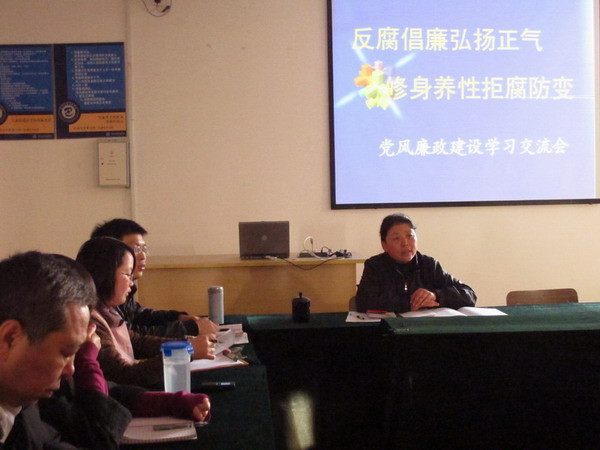 接著,教工黨支部書記付代偉首先發(fā)言,他匯報說黨員教師結(jié)合各自工作中的黨風(fēng)廉政風(fēng)險點,提高自身覺悟、認(rèn)真學(xué)習(xí)、加強黨章制度的約束力,在工作中依靠群眾、拓寬渠道、盡力解決相關(guān)事情,并堅持原則、注意監(jiān)督。各學(xué)生黨支部的書記也帶頭作了發(fā)言,介紹支部的黨風(fēng)廉政學(xué)習(xí)情況。黨員們接著也談了各自的學(xué)習(xí)工作情況。