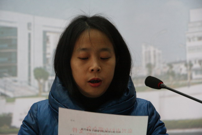 市婦聯(lián)城鄉(xiāng)部部長吳健宣讀《關于嘉興市女子創(chuàng)業(yè)學院成立》的文件