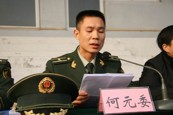 嘉興市武警支隊(duì)副參謀長(zhǎng),軍訓(xùn)團(tuán)團(tuán)長(zhǎng)何元委講話