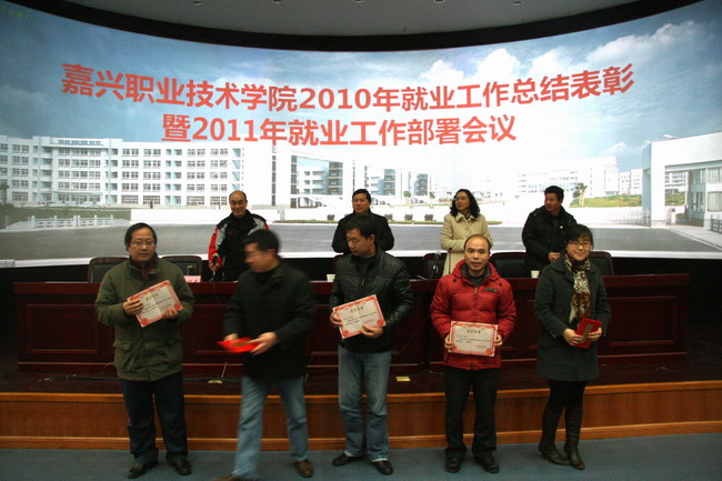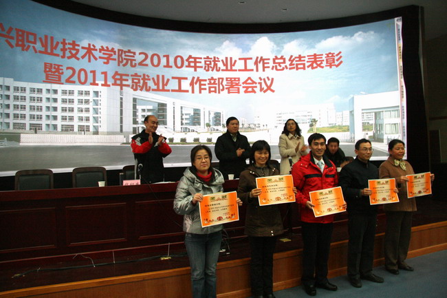招就辦主任代紹慶主持會議并對2010年的就業(yè)工作進行了全面總結(jié),對2011年就業(yè)工作開展的思路提出了設(shè)想。教務(wù)處處長巢新冬宣讀了2010年就業(yè)工作先進分院、就業(yè)“十佳”班主任、就業(yè)指導課程設(shè)計比賽獲獎教師名單。院領(lǐng)導周建新、處室領(lǐng)導巢新冬、代紹慶、金福泉對獲獎集體和個人頒獎。