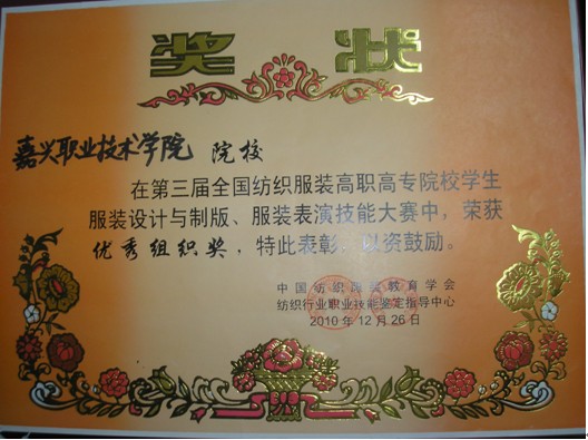 12月24日至26日,我院紡織與藝術(shù)設(shè)計分院服裝設(shè)計專業(yè)的三位學(xué)生參加了在山東濰坊舉辦的“崇德杯”第三屆全國紡織服裝高職高專院校服裝設(shè)計與制版學(xué)生技能大賽。