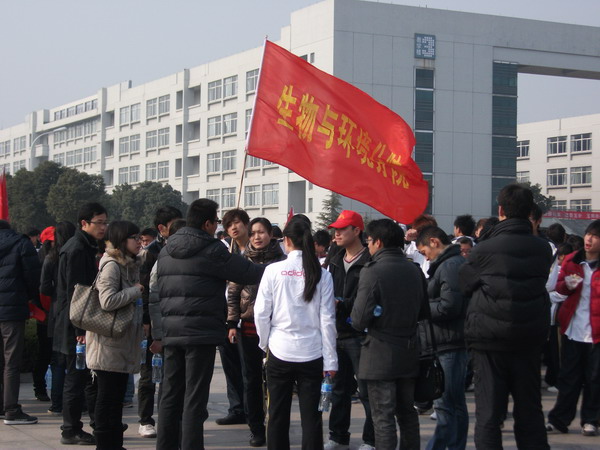 在這個(gè)陽光明媚的中午,各分院代表隊(duì)在12:15整隊(duì)完畢,學(xué)工部副部長魯中海老師和團(tuán)委書記錢燕婷老師再次向各帶隊(duì)老師強(qiáng)調(diào)了安全問題,于12:30準(zhǔn)時(shí)出發(fā)。領(lǐng)頭的是團(tuán)學(xué)干部隊(duì)伍,飄揚(yáng)的校旗指引著前進(jìn)的方向。接下來依次是繼續(xù)教育分院、生物與環(huán)境分院、機(jī)電與汽車分院、外語與貿(mào)易分院、信息與管理分院和紡織工貿(mào)與藝術(shù)設(shè)計(jì)分院的方隊(duì),同學(xué)們在各團(tuán)總支書記和體育老師們的帶領(lǐng)下向市民廣場整齊進(jìn)發(fā)。