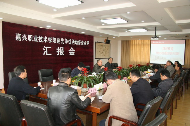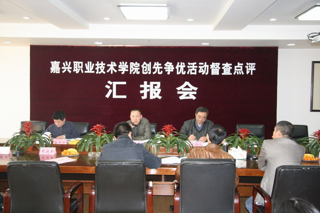 按照市委創(chuàng)先爭優(yōu)領(lǐng)導(dǎo)小組的統(tǒng)一安排和部署,2010年12月7日上午,嘉興市委創(chuàng)先爭優(yōu)領(lǐng)導(dǎo)小組第七督查點評組在組長市委創(chuàng)先爭優(yōu)活動領(lǐng)導(dǎo)小組成員、市國資委副主任呂亞軍的帶領(lǐng)下,來我院對創(chuàng)先爭優(yōu)活動開展情況作督查點評。督查點評組成員還有,市國資委黨建處處長王群鳴、市委創(chuàng)先爭優(yōu)活動辦公室綜合組成員、市委組織部組織處處長助理匡平平。學(xué)院黨政領(lǐng)導(dǎo)班子成員和各黨總支、直屬黨支部書記參加了匯報會。