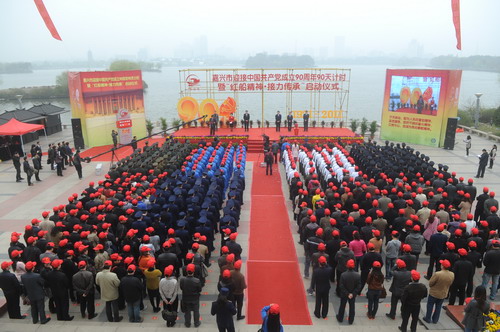 紅船劈波行,精神聚人心。4月2日上午,由嘉興市委與浙江日報報業(yè)集團等單位聯(lián)合舉辦的迎接中國共產(chǎn)黨成立90周年90天計時暨“紅船精神·接力傳承”活動啟動儀式,在南湖會景園望湖樓廣場隆重舉行。