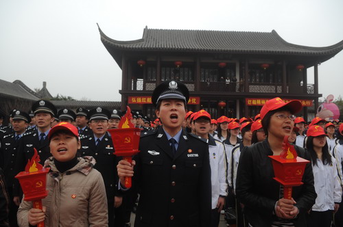 由我院黨委委員、副院長都建明同志帶隊,我院50名大學(xué)生組成的青年學(xué)生方陣參與了整個啟動儀式。這些學(xué)生中有預(yù)備黨員,有入黨積極分子還有團員青年,他們著裝整齊、步伐統(tǒng)一,以最好的精神面貌大聲高呼“紅船精神,接力傳承!”的口號,充分體現(xiàn)了當代大學(xué)生意氣風(fēng)發(fā)、生機勃勃的風(fēng)貌。其中,我院的大二學(xué)生施曉娟幸運地成為了首批“火種火炬手”之一。曉娟于今年1月光榮地加入了中國共產(chǎn)黨,對她來說,今天能參加啟動儀式是最有意義的一課。曉娟表示,會把短信傳給同學(xué),讓紅船精神一直傳遞下去。而在曉娟的手機上,也收到了主辦方發(fā)送的“電子火炬”。“火炬”上有“紅船精神·接力傳承”等文字,背景是紅船、黨徽,還有印有90周年字樣的“火炬”圖案。