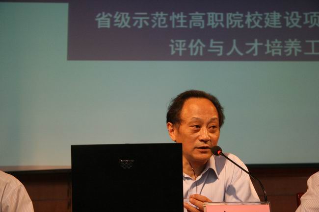 會上,盛健院長向大家作了《省級示范性高職院校建設(shè)項(xiàng)目中期評價與人才培養(yǎng)工作評估》報告,他從項(xiàng)目建設(shè)的基本情況、項(xiàng)目資金的執(zhí)行情況、項(xiàng)目建設(shè)的主要成效、項(xiàng)目建設(shè)不足與改進(jìn)四個方面,以PPT的形式闡述了我院3年來開展的示范建設(shè)情況。