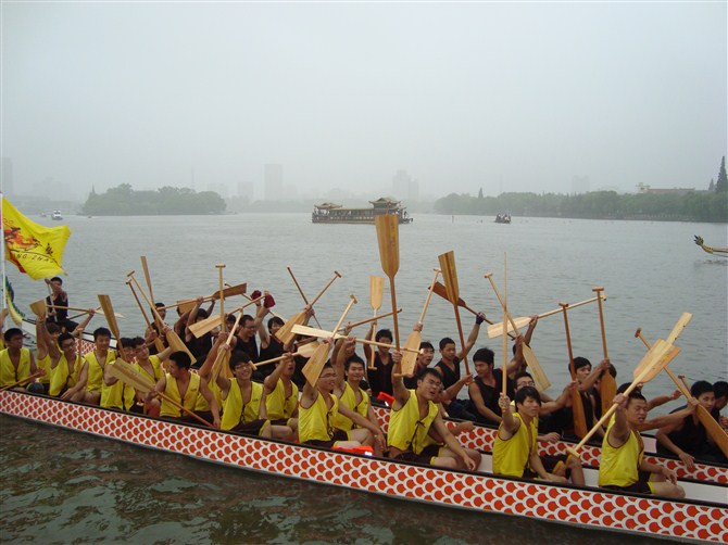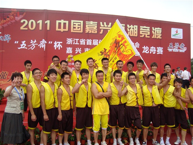 經(jīng)過兩天的激烈角逐,在省首屆體育社團(tuán)運動會龍舟賽暨嘉興市第七屆運動會龍舟賽上,代表市屬單位參賽的我院與五芳齋合作共建的龍舟隊隊員們克服不利的天氣,萬眾一心,在兩天的兩個項目比賽中均獲得了第九名,并且兩項比賽總成績也名列第九,比去年第一次參賽成績和名次都有了很大進(jìn)步。