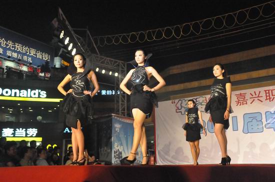 6月8日晚,江南摩爾演藝廣場(chǎng)人頭擠擠,觀眾如云。紡織與藝術(shù)設(shè)計(jì)分院與海鹽華凌制衣皮具有限公司聯(lián)合舉辦的2011屆“華凌杯”服裝畢業(yè)設(shè)計(jì)作品展在這里隆重舉行。伴隨著強(qiáng)烈的音樂(lè)節(jié)奏,嘉職院學(xué)生模特隊(duì)精彩演繹了2011屆服裝設(shè)計(jì)2個(gè)畢業(yè)班的32個(gè)系列的學(xué)生作品。此次展示的作品主題多樣、風(fēng)格強(qiáng)烈,商業(yè)元素與自我創(chuàng)意在學(xué)生作品中得到了很好的交融,作品受到了應(yīng)邀出席的嘉欣絲綢、華凌制衣、富絹制衣、海寧角斗士服飾、愛(ài)朗服飾等眾多企業(yè)的老總和設(shè)計(jì)師的好評(píng),受到了在場(chǎng)的學(xué)院黨委委員、紀(jì)委書(shū)記章康龍的高度表?yè)P(yáng)和院教務(wù)處、學(xué)生處、科技和產(chǎn)學(xué)處、學(xué)院辦公室等眾多領(lǐng)導(dǎo)和師生的肯定。充分展示了我分院服裝專業(yè)近年來(lái)校企合作、工學(xué)結(jié)合的教學(xué)改革成果和學(xué)生扎實(shí)的專業(yè)功底。(高慧英)