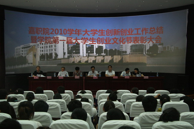 為更好地總結(jié)2010學(xué)年我院大學(xué)生創(chuàng)業(yè)工作經(jīng)驗(yàn),明確今后努力的方向,進(jìn)一步促進(jìn)我院大學(xué)生創(chuàng)新創(chuàng)業(yè)教育實(shí)踐深入開展,學(xué)院2010學(xué)年大學(xué)生創(chuàng)新創(chuàng)業(yè)教育工作總結(jié)暨首屆大學(xué)生創(chuàng)業(yè)文化節(jié)表彰大會(huì)于2011年6月9日在4號(hào)樓109報(bào)告廳隆重舉行。學(xué)院黨委委員、副院長(zhǎng)都建明,學(xué)工部副部長(zhǎng)、學(xué)生處副處長(zhǎng)王敏堅(jiān)及各分院主管學(xué)生工作的領(lǐng)導(dǎo)出席了本次大會(huì)。會(huì)議由學(xué)生處大學(xué)生創(chuàng)業(yè)園管理辦公室主任韓旭主持。