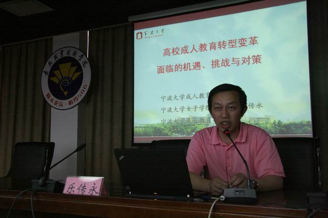 樂傳永教授的講座從高校成人教育變革面臨的機(jī)遇與挑戰(zhàn)、未來的發(fā)展走向、發(fā)展的路徑選擇三個方面展開,他結(jié)合自己所在的成教學(xué)院事業(yè)開展的實(shí)踐進(jìn)行深入淺出的闡述,介紹了高校成教事業(yè)由學(xué)歷教育為主轉(zhuǎn)向?qū)W歷教育與非學(xué)歷教育并舉、并重發(fā)展;由外延式規(guī)模擴(kuò)張型向內(nèi)涵式質(zhì)量提高型轉(zhuǎn)變;由邊緣走向中心甚至核心的趨向加速。樂教授的觀點(diǎn)讓全體與會人員耳目一新、受益匪淺。