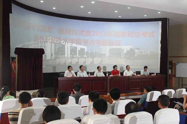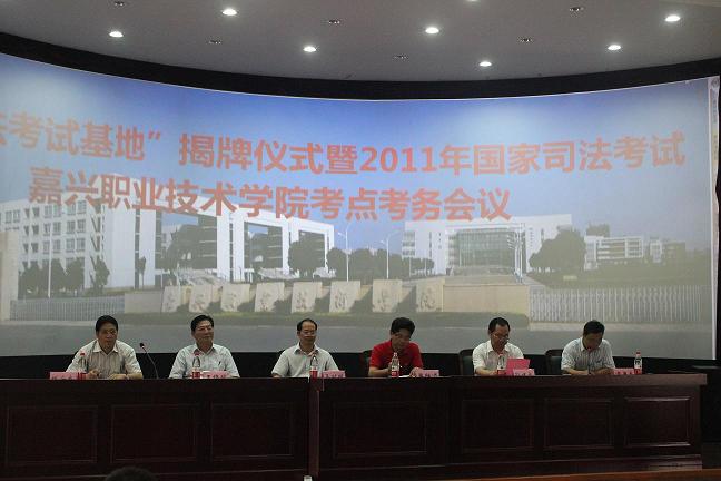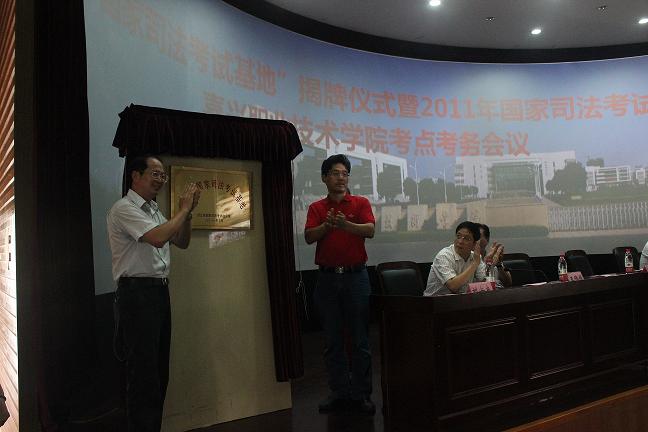 2011年國(guó)家司法考試(嘉興考區(qū))于9月17日在我院開(kāi)考。9月16日下午,我省首個(gè)國(guó)家司法考試基地——嘉興市國(guó)家司法考試基地在我院揭牌。浙江省司法廳赴嘉興巡考組組長(zhǎng)、省司法廳副巡視員馬時(shí)明,省司法廳赴嘉興督考組組長(zhǎng)王錦耀,學(xué)院院長(zhǎng)單勝道,嘉興市司法局黨委書記、局長(zhǎng)孫建良,黨委副書記、紀(jì)委書記劉安良等領(lǐng)導(dǎo)出席揭牌儀式。儀式由學(xué)院黨委委員、紀(jì)委書記章康龍主持。