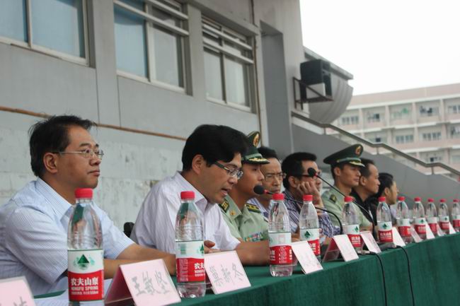 單勝道作軍訓動員講話,他說多年來我院十分重視大學生軍訓工作,一直把大學生軍訓作為學生在校教育的重要環(huán)節(jié)。武警支隊領導一如既往地高度重視,克服各種困難,對軍訓工作進行了周密的規(guī)劃和部署。他代表學院軍訓工作領導小組提出幾點要求:第一,希望各分院領導,學校各有關部門統(tǒng)一思想,提高認識,切實加強對2011級大學生軍訓工作的組織領導;第二,希望承訓的部隊官兵高標準、嚴要求,從學生的實際出發(fā),科學合理安排訓練計劃和科目,以質量為要求,以安全為原則,精心指導、認真施訓;第三,希望同學們充分利用軍訓的難得機會,自覺磨練,戰(zhàn)勝自我,增強承受困難和挫折的勇氣。