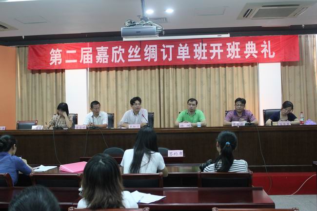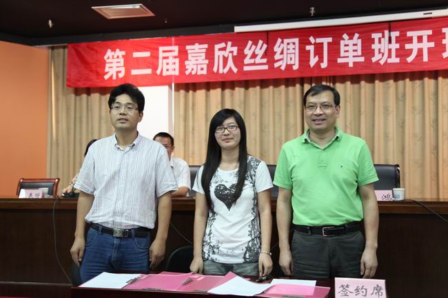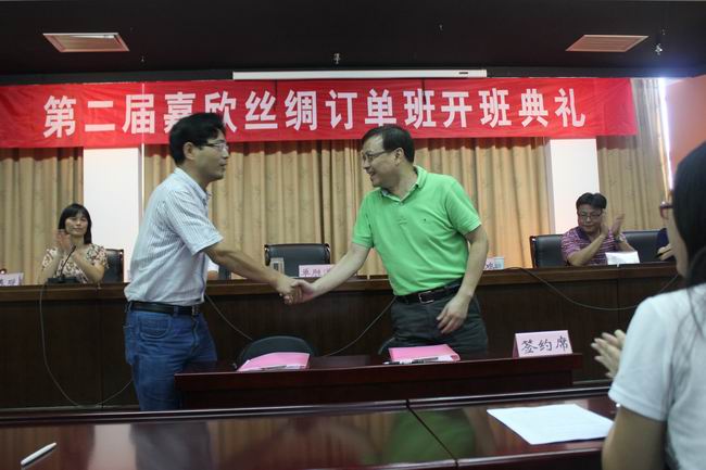 簽約儀式上,單勝道院長(zhǎng)對(duì)訂單班學(xué)生提出了希望與要求。他說(shuō),這是他第一次參加與企業(yè)簽訂合作協(xié)議的會(huì)議,首先對(duì)嘉欣絲綢公司和領(lǐng)導(dǎo)表示感謝,學(xué)院的快速發(fā)展離不開嘉欣絲綢集團(tuán)的大力支持和幫助,自1993年來(lái)雙方即展開合作,集團(tuán)還在我院設(shè)立“順昌”幫困基金,這次又開展第二屆訂單班,雙方的校企合作是卓有成效的。其次,他對(duì)分院提出希望。希望紡藝分院珍惜合作機(jī)會(huì),與傳統(tǒng)合作單位融洽相處,倡導(dǎo)雙贏,創(chuàng)新合作方式與模式,努力做到校、企、學(xué)生三方滿意,只要機(jī)制到位,“廠中?!薄靶V袕S”的合作方式是可行的。其三,他要求分院老師也要甘當(dāng)學(xué)生,向企業(yè)虛心請(qǐng)教,要經(jīng)常下企業(yè)、下基層,學(xué)習(xí)其成功經(jīng)驗(yàn)。同時(shí),希望訂單班的同學(xué)們端正認(rèn)識(shí),擺正心態(tài),做到理論聯(lián)系實(shí)際,學(xué)用相長(zhǎng),因?yàn)閷?shí)踐是培養(yǎng)人才的重要途徑。在實(shí)習(xí)過(guò)程中要注重自己的學(xué)生和“準(zhǔn)員工”雙重身份,注意自身安全和生產(chǎn)安全,做到“愛(ài)廠即愛(ài)家”。