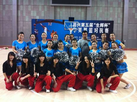 10月28日晚上7點半,在嘉興體育館迎來了嘉興市第五屆“生輝杯”中美職業(yè)男籃對抗賽,由浙江稠州銀行隊主場對陣美國洛杉磯旅行者職業(yè)籃球隊。我院啦啦操隊被邀參加中美籃球?qū)官惱怖膊俦硌?,啦啦操隊員在比賽間歇進行了精彩的啦啦操表演。隊員們熱情四射,活力無限,用她們動人的舞蹈向觀眾們展示了動感十足花球啦啦操和爵士啦啦操,成為本場比賽的一道靚麗的風景線。獲得了現(xiàn)場觀眾陣陣熱烈掌聲,不亞于J.R史密斯出場扣籃的掌聲,帶給了現(xiàn)場觀眾視覺、聽覺上的雙重享受。