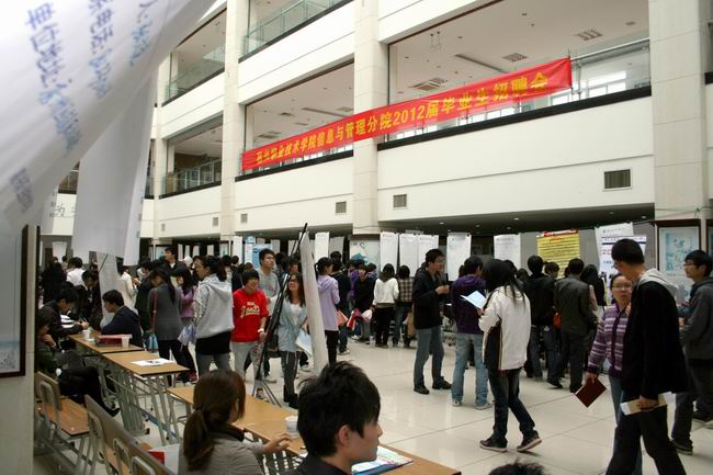 11月2日下午,信息管理分院在圖文信息中心2樓舉辦2012屆畢業(yè)生專場招聘會。進場的企業(yè)有110多家,提供的崗位數(shù)有1500多個。覆蓋了工商管理、財務(wù)管理、電子商務(wù)、軟件技術(shù)、計算機應(yīng)用技術(shù)、計算機網(wǎng)絡(luò)技術(shù)、物流管理、文秘等8個應(yīng)屆專業(yè)。