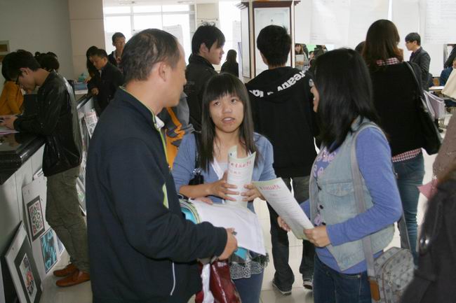 與企業(yè)的迫不及待相比,我們的學(xué)生則顯得從容不迫,充分享受著就業(yè)“暖冬”的有力條件,他們拿著一份份準(zhǔn)備好的簡歷,在自己心儀的單位前駐留咨詢,積極推薦自己,有幾個展位前甚至還排起了長龍。分院領(lǐng)導(dǎo)一直工作在現(xiàn)場,同班主任老師和專業(yè)教研室主任一樣,積極指導(dǎo)學(xué)生應(yīng)聘。老師的面授機宜,大大鼓舞了學(xué)生的信心,他們踴躍自薦,幾乎每個用人單位都收下了厚厚一疊學(xué)生的簡歷。除09級學(xué)生外,今天2010、2011級的學(xué)生也到場參觀學(xué)習(xí),有些學(xué)生也與企業(yè)面談交流,充分積累經(jīng)驗,為自己將來的就業(yè)奠定基礎(chǔ)。