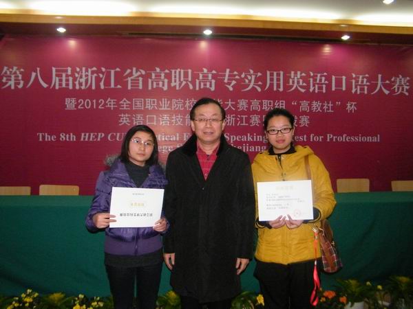 由浙江省教育廳舉辦的2011年浙江省高職高專實用語口語大賽又2012年全國職業(yè)院校技能大賽暨第八屆全國高職高專實用英語口語大賽選拔賽于12月7日-9日在金華職業(yè)技術學院開賽,來自全省50所各職業(yè)院校的98位選手參加公共外語組和39所院校80位選手參加專業(yè)英語組的比賽。我院外語外貿分院奧杰班選手胡勝燕在公共外語組比賽中斬獲二等獎(指導教師:孟建國、胡燕雯),李浩娟在今年5月參加有1462名選手代表560所院校參賽的全國英語寫作大賽并獲二等獎基礎上,又獲得這次口語大賽三等獎(指導教師:孟建國、胡燕雯)。應用英語10-2班洪嵐和09-1班的鄭勤賽在英語專業(yè)組分別獲得三等獎(指導教師:顧曉棟、陳琳)和優(yōu)勝獎(指導教師:顧曉棟、潘雯)。