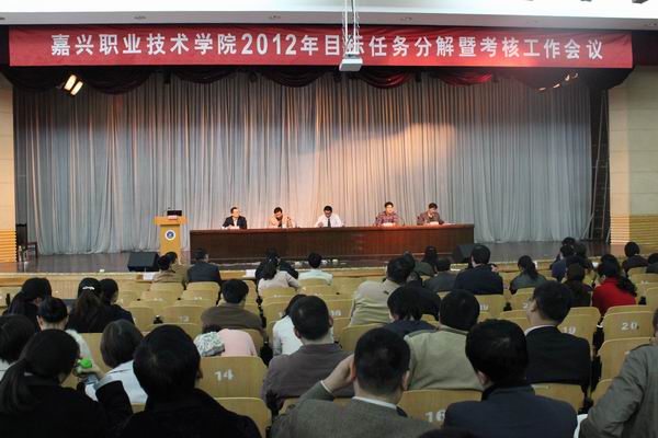 會議首先由黨辦、院辦副主任莊應強對學院2012年度目標任務分解暨考核制度進行解讀,內容包括:“十二五”及2012年度目標任務分解;教學分院二級管理綜合業(yè)績考核辦法;職能處室“五型”部門考核辦法。