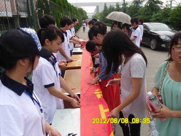當綠草又一次鋪滿校園,當夏氣又一次漸漸浮起,微風里開始飄散著離別的味道,大三的同學將帶著眷戀與不舍、希望與憧憬,告別那些屬于月光、歡笑、淚水和友情的日日夜夜,背起行囊走上新的征途。為響應學校關于文明離校的號召,2012年6月8日上午,機電與汽車分院團總支發(fā)起“光榮畢業(yè)文明離校”的2012屆畢業(yè)生文明離校承諾簽字活動,并發(fā)放600多份倡議書。