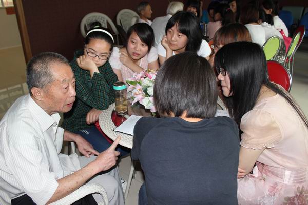 6月8日下午,學(xué)院外語廣場內(nèi)其樂融融,笑聲不斷。嘉興市8名新四軍老戰(zhàn)士和外語與貿(mào)易分院學(xué)子們分組圍坐在一起,共話當(dāng)年烽火歲月,耄耋老人精神矍鑠,他們興致勃勃地與青春學(xué)子們共聚“心靈咖啡”,氛圍輕松并怡然自樂。這是嘉職院外貿(mào)學(xué)子與新四軍老戰(zhàn)士結(jié)對十周年的和諧畫面。