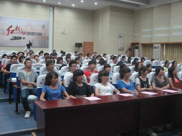 9月7日下午,院黨委宣傳部與生物與環(huán)境分院聯(lián)合開設了第一期道德講堂。120多名生環(huán)分院學生代表和教師代表齊聚在“道德講堂”主講壇——4號樓109,聆聽“紅船旁的道德講堂”道德宣講活動。本次活動共五個流程:合唱一首歌,《感恩的心》久久環(huán)繞在所有人的耳邊,就像那些無私奉獻的感情;看兩段視頻,最美女教師張麗莉勇救學生的感人事跡和2011十大感動中國人物——胡忠與其妻謝曉君的支教故事深深感動了在場的所有師生;讀論語名言,大家齊聲朗誦中華傳統(tǒng)道德經(jīng)典《論語》中的師道名言,發(fā)人深??;講一個故事,40年教齡的退休老教師李福林將他為社區(qū)孩子的五年義務奉獻娓娓道來,他的事跡令人欽佩,張彩萍老師作為班主任對學生的點點滴滴的關懷溫暖人心;最后的點評,錢越秀老師表示要多向優(yōu)秀教師學習,要為教育事業(yè)貢獻出更大的力量,學生代表深深的感念師恩,表示要積極學習教師們的無私奉獻的精神并將它轉(zhuǎn)化到學習和工作中去,并由衷的祝福老師們教師節(jié)快樂!