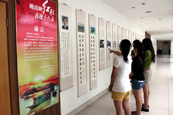 翰墨書(shū)真情,丹青繪心聲。在迎接黨的十八大勝利召開(kāi)之際,9月11日,由學(xué)院黨委宣傳部與離退休黨支部、退教協(xié)會(huì)聯(lián)合舉辦的“晚霞映紅船 喜迎十八大”書(shū)畫(huà)展在圖書(shū)館四樓展出。