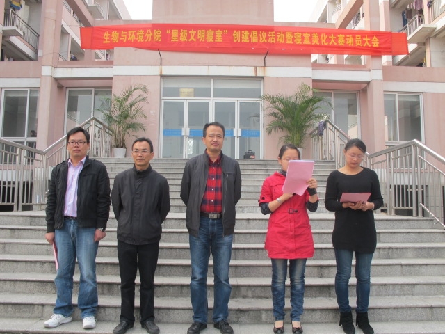 為響應(yīng)學(xué)院開展的“我的寢室我的家”星級寢室創(chuàng)建活動(dòng),調(diào)動(dòng)同學(xué)們創(chuàng)建星級文明寢室的積極性,讓寢室成為同學(xué)們的學(xué)習(xí)生活的重要棲息地。生物與環(huán)境分院“星級文明寢室”創(chuàng)建倡議活動(dòng)由此拉開序幕。學(xué)院學(xué)工部部長、學(xué)生處處長童云飛,生物與環(huán)境分院黨總支書記、副院長戈秀龍參加了倡議活動(dòng)。