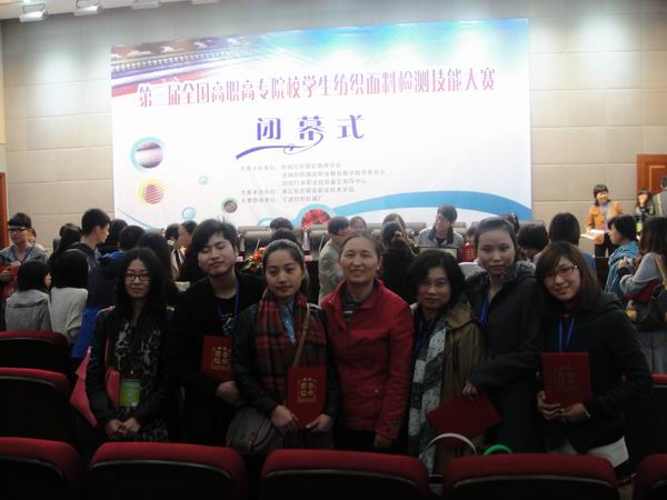 11月7日-9日,第三屆全國高職高專院校紡織面料檢測學(xué)生技能大賽在浙江紡織服裝職業(yè)技術(shù)學(xué)院舉行。紡織與藝術(shù)設(shè)計(jì)分院首次組織紡織專業(yè)5名學(xué)生參加本次比賽,經(jīng)過兩天緊張激烈的角逐,共獲得二等獎1名,三等獎3名,其中司靜靜同學(xué)獲二等獎,楊靖、李夢菲、王淳乙3位同學(xué)均獲三等獎。