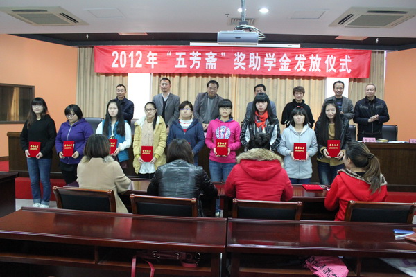 11月21日下午,學(xué)院在1-506會議室舉行2012年“五芳齋”獎、助學(xué)金發(fā)放儀式。會議首先由浙江五芳齋股份有限公司黨委副書記、工會主席王維維宣讀2012年“五芳齋”獎、助學(xué)金受助學(xué)生名單,隨后,浙江五芳齋股份有限公司黨委書記、副總裁趙建平向王雅莉等25名同學(xué)頒發(fā)助學(xué)金和獎學(xué)金。