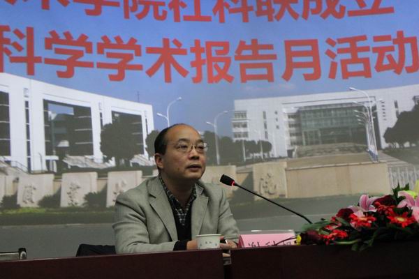 為推動(dòng)學(xué)院人文社會(huì)科學(xué)普及和宣傳教育工作,繁榮和發(fā)展學(xué)院社會(huì)科學(xué)事業(yè),11月29日下午,學(xué)院在四號(hào)樓109學(xué)術(shù)報(bào)告廳召開(kāi)嘉興職業(yè)技術(shù)學(xué)院社會(huì)科學(xué)聯(lián)合會(huì)成立預(yù)備會(huì)和選舉會(huì),11月30日下午啟動(dòng)秋季社科學(xué)術(shù)報(bào)告月活動(dòng),標(biāo)志著我院社會(huì)科學(xué)聯(lián)合會(huì)正式宣告成立。浙江省社科聯(lián)秘書長(zhǎng)、省規(guī)劃辦主任謝利根,嘉興市社科聯(lián)辦公室主任李培根到會(huì)祝賀,學(xué)院領(lǐng)導(dǎo)周奇跡、單勝道、沈建龍、章康龍、沈建根、陳海忠及全院人文社科工作者代表出席了大會(huì)。大會(huì)由學(xué)院黨委委員、副院長(zhǎng)章康龍主持。