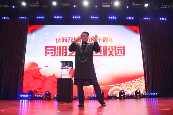 舞者在《青春風(fēng)華》激揚的旋律下,和著婀娜的舞姿展示了中國的蓬勃朝氣與生機活力,出場便帶給觀眾震撼的視聽感受。香港國際音樂節(jié)金獎獲得者徐怡瑩帶來的《冬天里的一把火》當即燃燒全場。原創(chuàng)情景劇《文明協(xié)奏曲》以“文明出行,安全第一”為主題,融合當下文明事件、交通熱點、社會風(fēng)尚,通過風(fēng)趣的表演、詼諧的語言和真實而富有感染力的對白呼吁大家禮讓斑馬線,文明過馬路,排隊守秩序,禮儀待賓客,改正不文明行為。語言是文明的集中表達,相聲《幸福生活》用詼諧幽默的方式展現(xiàn)“美美與共”的和諧局面, 把臺下的觀眾逗得捧腹大笑。雜技《酒魂》、魔術(shù)《幻》以其精湛的技藝博得臺下的驚嘆連連、掌聲陣陣。在主持人和觀眾的互動下,百變大咖秀再次將現(xiàn)場氣氛推向高潮。