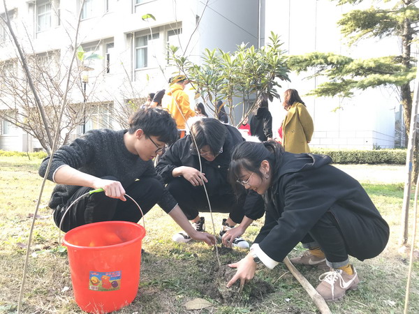 12日下午,紡織與藝術(shù)設(shè)計(jì)學(xué)院團(tuán)總支老師帶領(lǐng)學(xué)生干部于12號(hào)教學(xué)樓東側(cè)開展植樹活動(dòng),擁抱春天,種下希望。