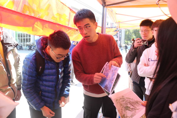 “書香換花香,綠意換情意”活動(dòng)由“看圖識(shí)花”、“環(huán)保標(biāo)語(yǔ)征集”和“圖書換綠植”三部分組成,吸引了不少過往師生駐足,園林專業(yè)的同學(xué)在一旁向大家介紹植物的生長(zhǎng)習(xí)性、養(yǎng)護(hù)知識(shí)等科普知識(shí)。