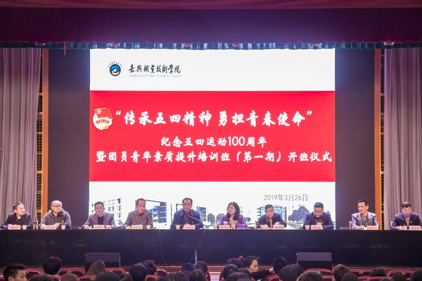 3月26日晚,紀(jì)念五四運(yùn)動(dòng)100周年暨團(tuán)員青年素質(zhì)提升培訓(xùn)班(第一期)開班儀式在2號(hào)樓報(bào)告廳舉行。校黨委副書記、紀(jì)委書記沈建龍做開班動(dòng)員講話,學(xué)工部部長童云飛主持儀式,宣傳部常務(wù)副部長高慧英、各二級(jí)學(xué)院黨總支書記、校團(tuán)委書記,團(tuán)線老師與510名團(tuán)員青年參加開班活動(dòng)。