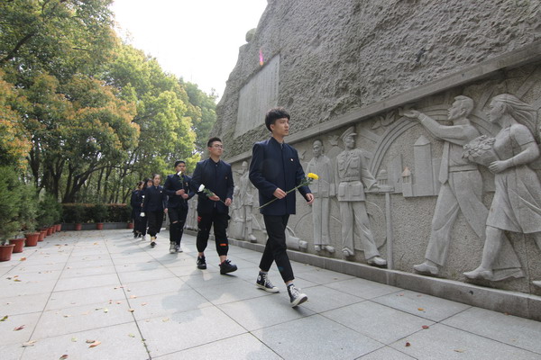 莊嚴的奏國歌儀式后,校學生會主席費琦峰同學為大家講述了革命先烈英勇故事,號召大家繼承先烈革命傳統(tǒng),發(fā)揚前輩愛國主義精神。隨后,學生代表向烈士紀念碑敬獻花圈,全體同學向英烈們默哀三分鐘,活動現(xiàn)場莊嚴肅穆。最后,全體人員在團委副書記俞棟兒同學的帶領下,面向紀念碑宣誓并環(huán)繞一周獻上鮮花,以此深切緬懷革命先烈。