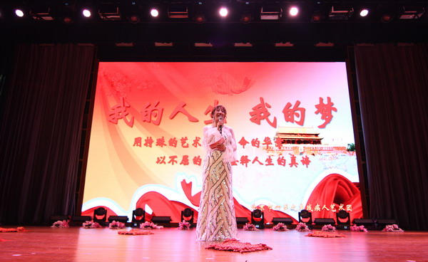 隨后,慰問(wèn)演出在大氣磅礴的聾啞青年表演的喜慶舞蹈《盛世中華》中拉開(kāi)了帷幕。單臂姑娘安露給我們帶來(lái)了動(dòng)聽(tīng)的歌曲《隱形的翅膀》,為自己點(diǎn)亮了那殘缺的手;聾人雜技演員的《魔幻晃圈》更是令人嘆為觀止;主持人和另一位表演者唱起了《我相信》和《朋友》,出色的歌聲引得全場(chǎng)觀眾的附和,大家用雙手為他們打起節(jié)奏;兩個(gè)人兩條腿,兩位舞者用殘缺的身軀為我們表演了舞蹈《你鼓舞了我》,身殘志堅(jiān),是不甘放棄的靈魂!火柴盒演奏《苗嶺的早晨》和舞蹈《絲路霓裳》,令現(xiàn)場(chǎng)師生連連稱嘆。